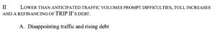 Here, the bullet points effectively convey that there were a number of times TRIP II sought or obtained approval to raise the toll road rates. And paired with the subheading: “Ever-rising tolls”? The message is clear and compelling.